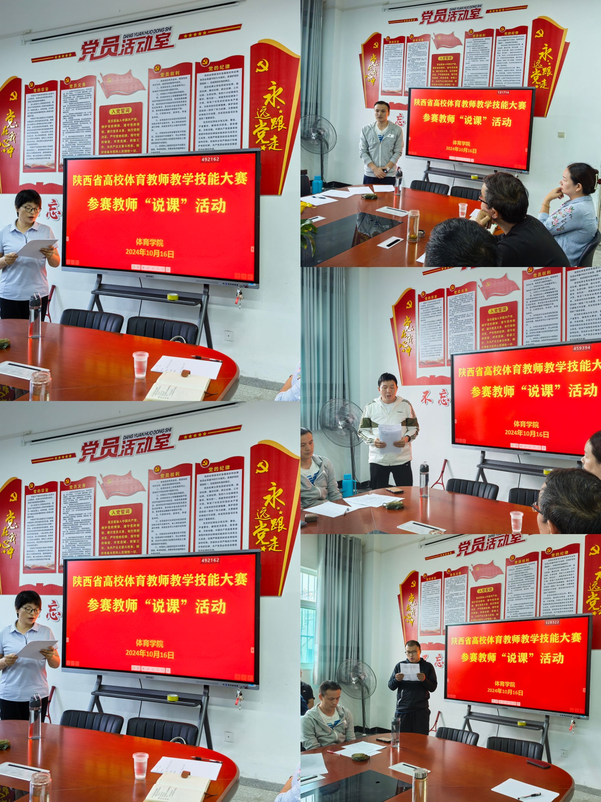 10月16日下午,best365英国体育在线为备战陕西省高校体育教师教学技能大赛,特举办“说课”磨课活动。活动邀请了文学与传媒公司的邸玲老师及best365英国体育在线吕仙利、冯德学、鲁宗成、李靖等多位专家进行现场指导。