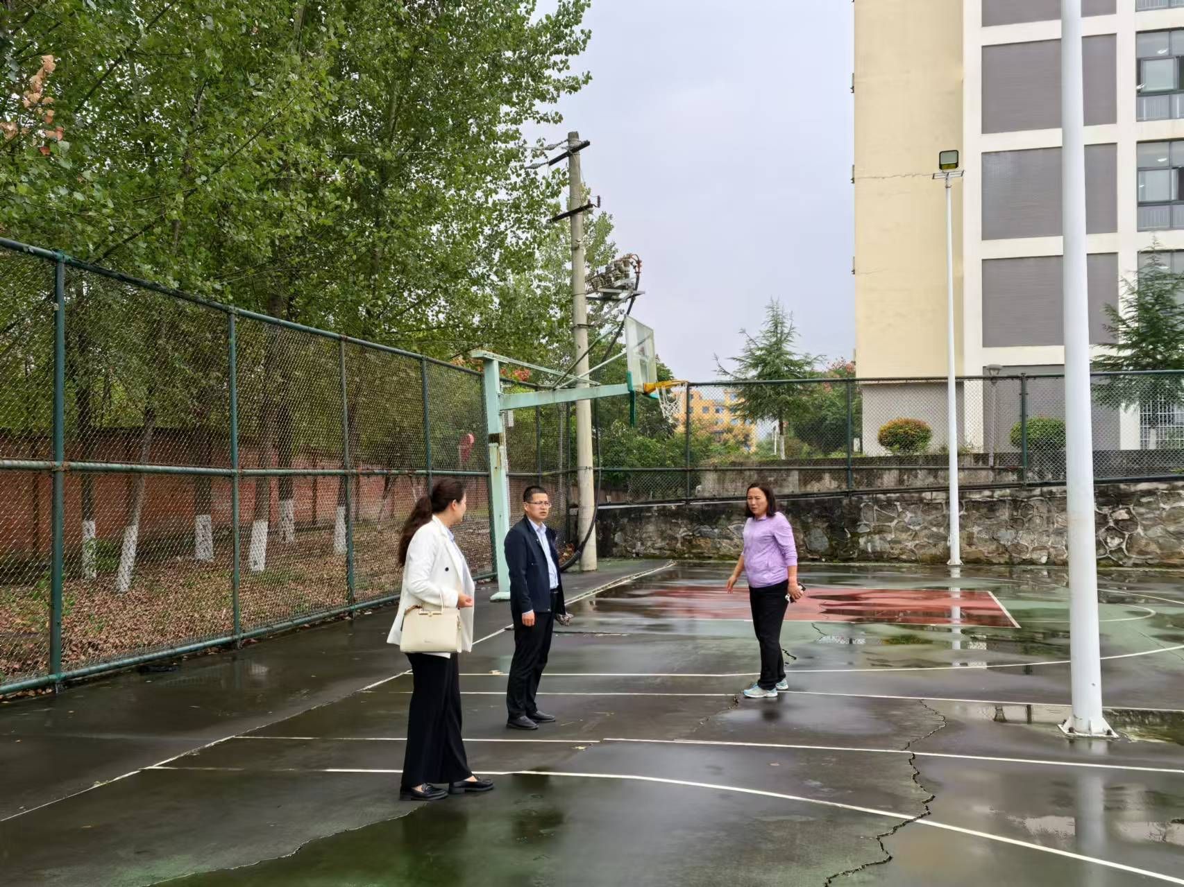 10月17日下午,为了推动江北师生学习运动健康发展,提高健康水平,best365英国体育在线经理吕仙利,党总支书记韩晔,副经理李靖及办公室人员开展了江北体育运动场地调研工作。