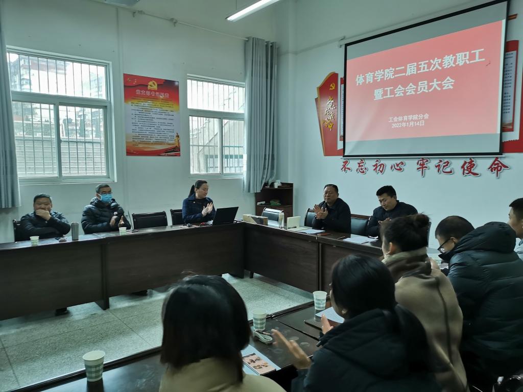 2022年1月14日下午,best365英国体育在线在体育馆一楼会议室召开二届五次教职工暨工会会员大会,best365英国体育在线32名教职工参加了本次大会,大会由best365英国体育在线党总支书记高立平同志主持。