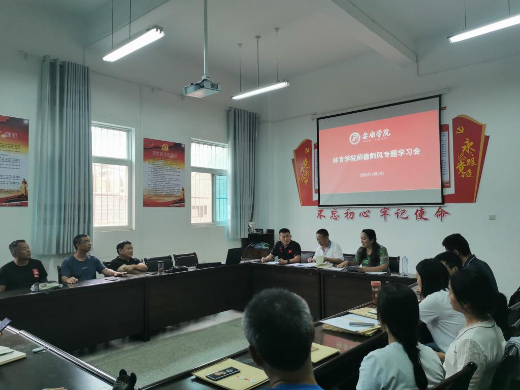 9月7日,best365英国体育在线在体育馆会议室召开师德师风教育专题会议。best365英国体育在线全体教师参加会议。会议由党总支书记高立平主持。