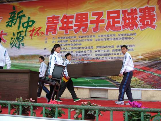 2012年11月1日,由安康市体育局、共青团安康市委等单位主办,公司承办的安康市喜迎十八大新中源杯青年男子足球赛在江南校区足球场隆重开幕。来自安康市各县区、事企业单位的十四支足球队济济一堂,相聚在best365英国体育在线足球场,充分展现出团结进取、蓬勃向上的安康青年精神风貌,以满腔的热情喜迎“十八大”的召开。安康市人大常委会副主任吴应德、安康市政协副主席徐铁军、安康公司党委副书记胡鸿晓等领导出席了开幕式。安康团市委副书记梁鸿主持开幕式。