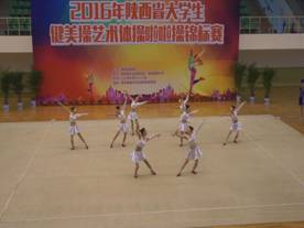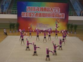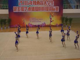 2016年“陕西省老员工健美操、艺术体操、啦啦操锦标赛”于5月25—27日在西安邮电大学举行,来自全省39个高校近1000名运动员参加了比赛。健美操比赛分甲(普通本科)、乙(体育院校)、丙(高职高专)三个组,共设25个项目。乙组共有8支参赛队伍。