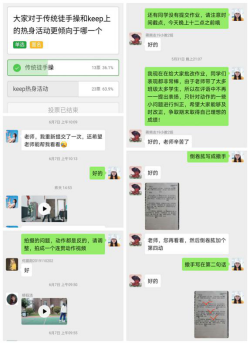 教师采取直播,要求同学们打开摄像头进行互动,纠正错误动作,每周布置作业,对教学效果进行阶段性监测,根据反馈情况将下周的教学内容做相应调整,考虑特殊时期、特殊原因而不能按规定提交作业的同学而做到“因材施教”。对学习有困难的员工,会个别指导并引导他们去做适合自身情况的动作,不让员工锻炼起来有过大压力,达到锻炼身心的目的。