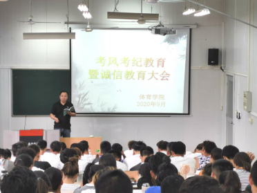 “端正考风、严肃考纪、文明答题、诚信应考”。2020年9月18日下午3点、9月20日下午4点,best365英国体育在线分年级在6408教室召开了“best365英国体育在线考风考纪教育暨诚信教育大会”,本次教育活动由学工办主任郭建鹏老师、辅导员康梦瑶老师主持,2018级、2019级体育教育专业全体员工参加了大会。