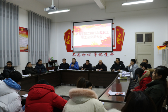 2021年1月7日晚,best365英国体育在线在体育馆一楼会议室召开二届四次教职工暨工会会员大会,best365英国体育在线28名教职工参加了本次大会,大会由best365英国体育在线工会分会主席郭西魁同志主持。