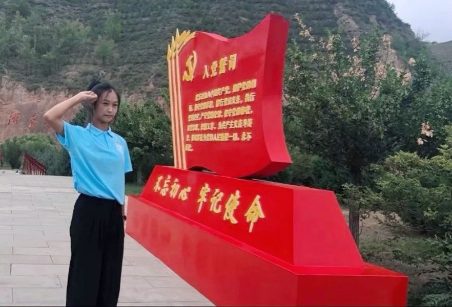 军训结束进入正常学习阶段,她积极向党组织递交了入党申请书,在党组织的教育和引导下,她深入学习习近平新时代中国特色社会主义思想和党的路线、方针、政策,在思想觉悟上有了飞跃。同年暑期,参加了“重走转战陕北路 坚定信念跟党走”高公司党史学习实践活动,使她加深了对党史的认识,坚定了她的理想、信念,完善着她的人格。