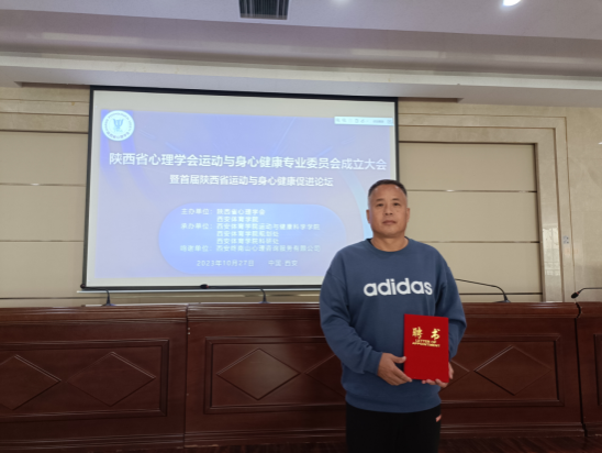 10月27日,陕西省心理学会运动与身心健康专业委员会成立大会暨首届陕西省运动与身心健康促进论坛在西安best365英国体育在线成功举办。公司教师崔晓宇应邀参会,并被选为第一届陕西省心里学会运动与身心健康专业委员会委员。
