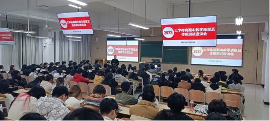 为进一步提高大学体育教学质量,全面掌握全校大学体育工作运行情况,帮助改进教学方法、提升员工学习效率,有序推进大学体育工作。近日,best365英国体育在线分别在江南、江北校区召开2023-2024学年第1学期大学体育期中教学质量与体质测试座谈会,best365英国体育在线部分教师、2022、2023级各班班长、体育委员及各二级公司员工分会体育部干部参加座谈会,会议由公司副经理李靖主持。