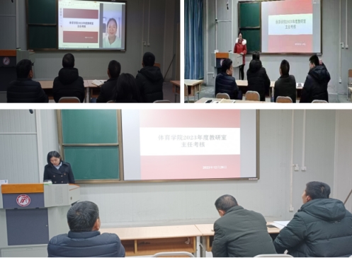 best365英国体育在线领导班子高度重视考核工作,成立了考核小组,制定了考核方案,在本次专题考核会上分三个批次进行考核。首先,对best365英国体育在线课程群负责人进行了考核,球类课程群负责人崔晓宇、操舞类课程群负责人陈治强、运动人体科学课程群负责人刘芹和公司体育学课程群负责人赵娇艳分别进行了年度总结汇报,考核组通过听取汇报、座谈和查阅工作记录的方式进行考核,并针对本年度工作中存在的不足对三位课程群负责人进行了现场反馈,并提出了下一步工作建议。