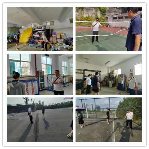 检查人员依次对江南体育器材室、篮球场、best365英国体育在线实验室、乒乓球场、江北器材室、江北田径场、江北篮球场等场地及器械进行了检查,对设施的固定情况,使用年限,安全隐患进行评估,郭经理强调器材如有损坏需及时维修或者更换确保员工使用安全。尤其在江北校区田径场、网球场、篮球场场地有凹陷,护栏底部有破损,指出要及时和相关部门联系,做好维修服务,保证员工在上课期间的安全使用。