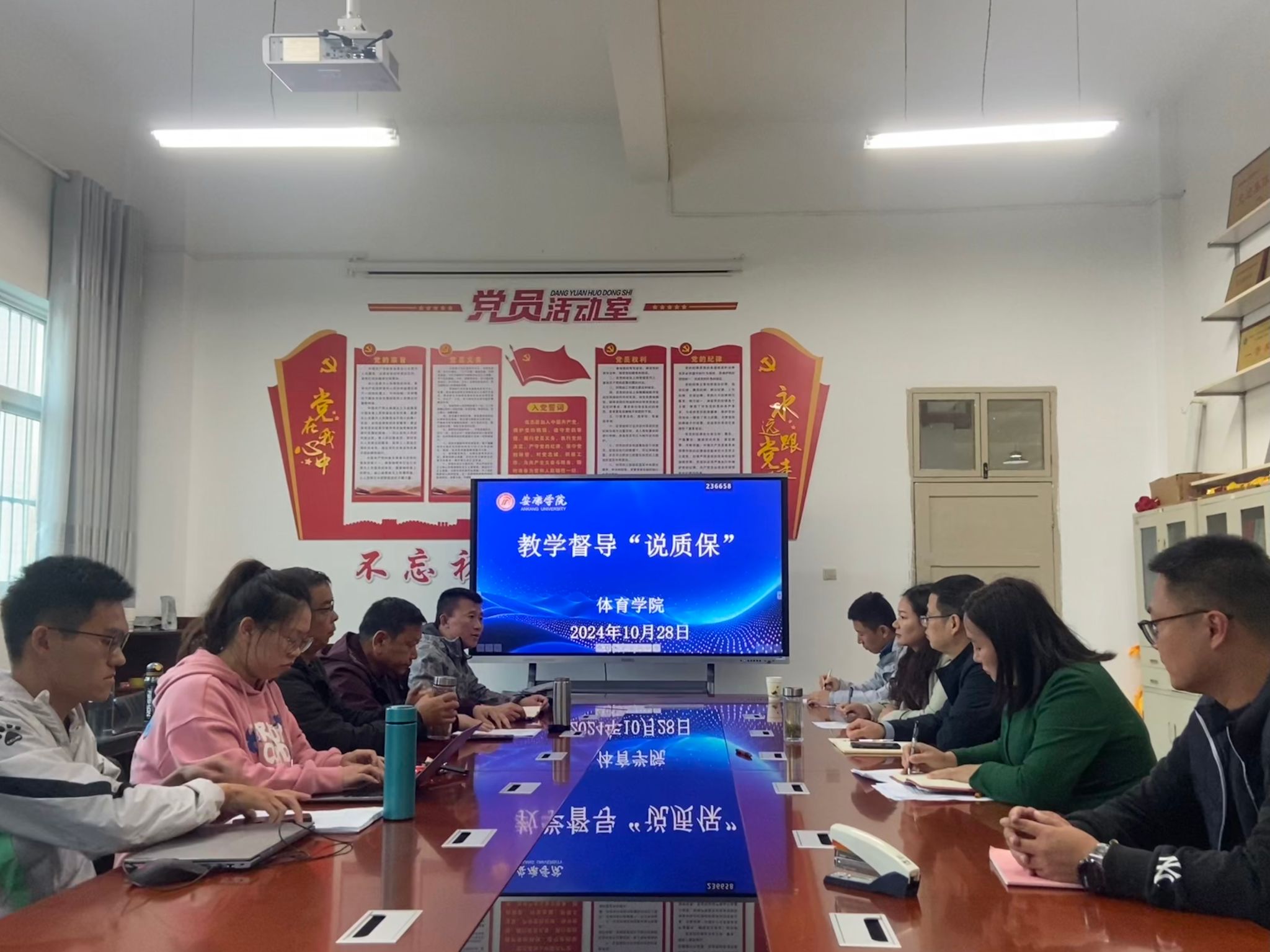 为进一步有效推进本科公司产品审核评估工作顺利进行,充分发挥教学督导在公司产品改革与评价中的作用,10月28日下午,公司在best365英国体育在线会议室组织开展教学督导“说质保”活动。体育公司党总支书记、经理、副经理、教学督导、系(教研室)主任、党政办主任、教师代表参加了本次活动,活动由郭西魁副经理主持。