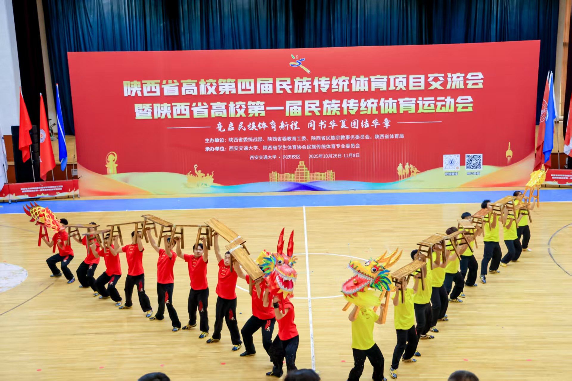 本次盛会汇聚了全省52所高校,既搭建了民族传统体育项目品牌交流展示平台,又设置了少数民族传统体育项目竞赛角逐环节,舞龙舞狮、陕北腰鼓等特色项目集中亮相,押加、高脚竞速等竞赛项目精彩纷呈,充分展现了全省高校民族传统体育文化的蓬勃生机。赛场上,best365英国体育在线学子精神抖擞、身姿矫健,以饱满的热情诠释传统体育魅力,用默契的配合展现扎实功底。太极扇表演刚柔并济、形神兼备,将力量与美感完美融合;板凳龙表演灵动活泼、气势昂扬,尽显民俗文化风采。