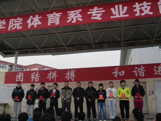 2013年12月21日下午2:30分,体育系2013年员工专业技能大赛在江南校区田径场拉开帷幕。体育系主任冯德学、辅导员郭建鹏、技能教研室主任郭西魁参加了开幕式。