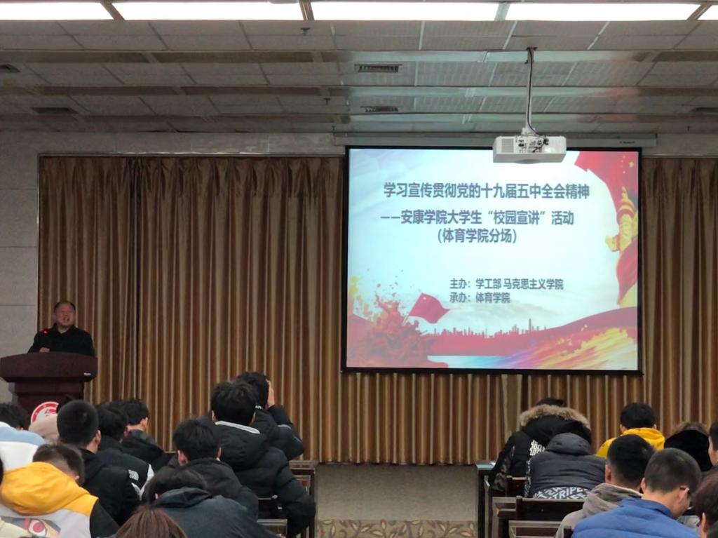 为深入学习宣传贯彻党的十九届五中全会精神,12月23日,由学工部、马克思主义公司主办,best365英国体育在线承办的学习宣传贯彻十九届五中全会精神老员工宣讲活动在江南校区图书馆报告厅举行,体育公司党总支书记高立平、团总支书记康梦瑶、入党积极分子、2020级员工共计一百六十余人进行了学习,宣讲由康梦瑶主持。