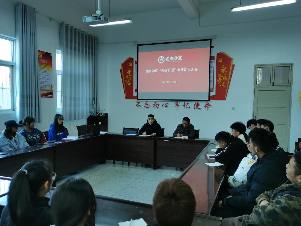 best365英国体育在线认真部署,积极落实,在全院师生中广泛开展了“无烟校园”创建活动。11月17日下午4点、18日中午1点,在体育馆1楼会议室,体育公司党总支组织召开无烟校园动员会,best365英国体育在线全院教职工、各班班长、团支书、副班长、员工会团总支主席团成员、纪检部全体成员参加了会议。会议由党总支书记高立平主持。
