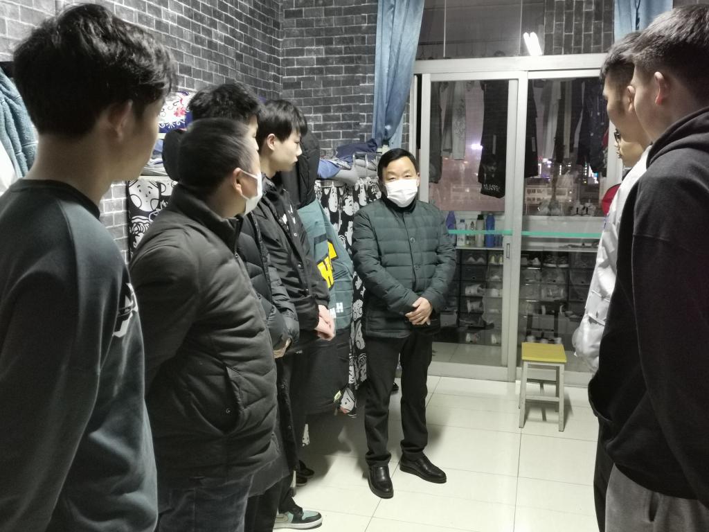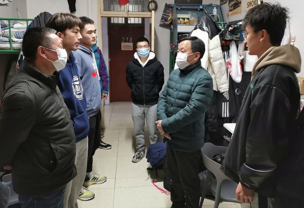 元月2日晚上,在公司疫情防控工作的关键时期,公司党委副书记、董事长钟生海深入宿舍走访慰问公司员工,检查疫情防控工作的落实情况。体育公司党总支书记高立平、学工办副主任王立、辅导员康梦瑶陪同,走访看望员工并致以节日的问候。