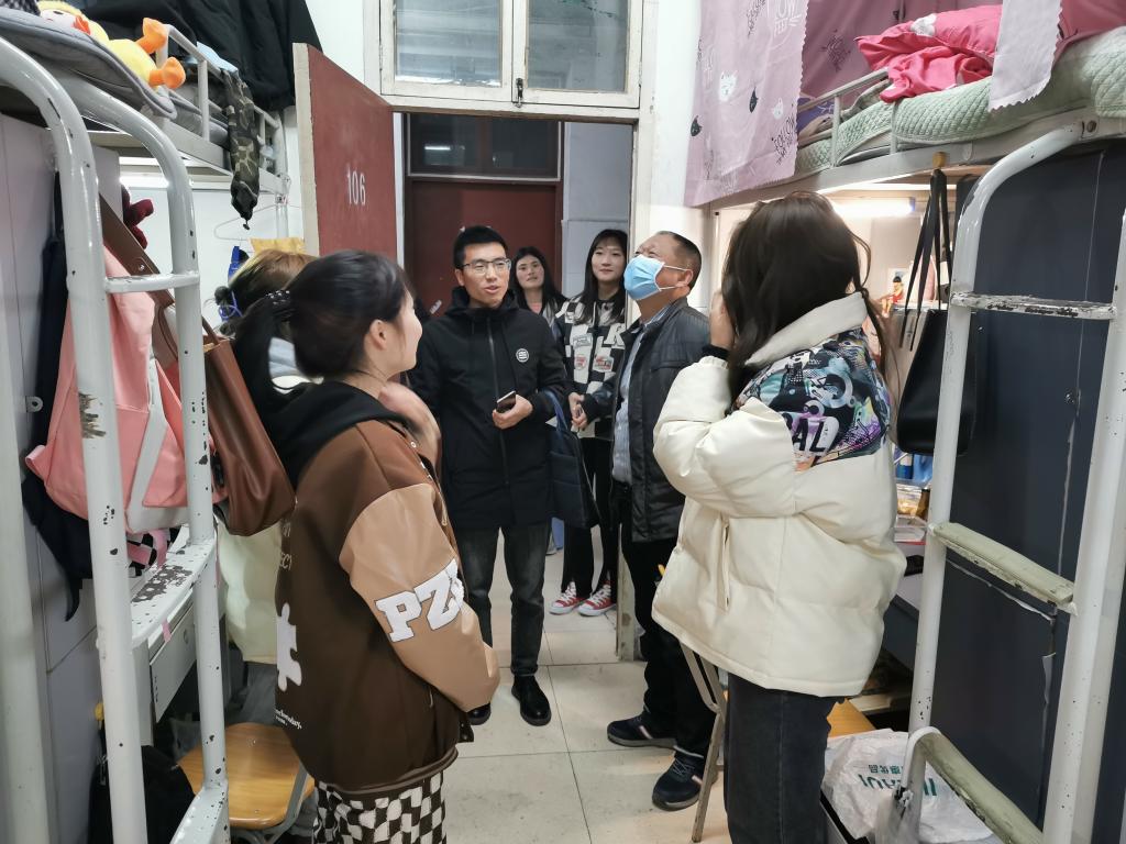 为进一步掌握公司员工的返校情况,了解员工返校后的精神面貌,2月20日晚,体育公司党总支书记高立平、学工办副主任王立、辅导员康梦瑶走进员工宿舍走访看望新学期返校员工。