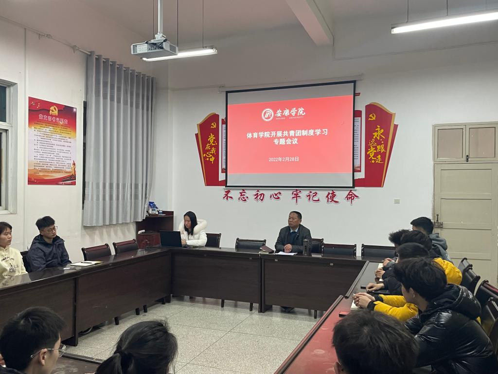 2月28日晚上7点在体育馆1楼会议室,best365英国体育在线团总支组织团学干部开展共青团制度学习专题会议,由体育公司党总支书记高立平讲团课,重点学习《新时代全面从严治团实施纲要》。团总支书记康梦瑶、团总支、团支部成员参加了会议。会议由康梦瑶主持。