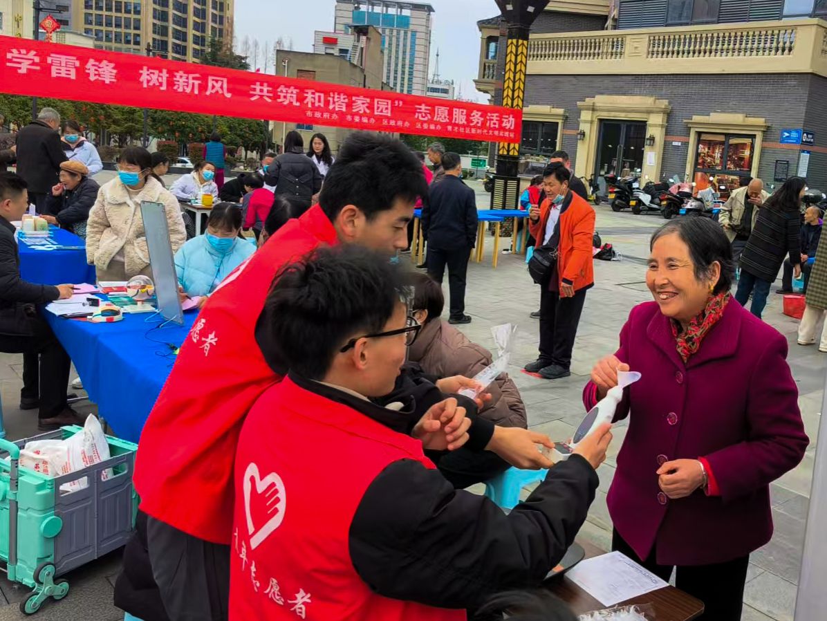 为弘扬新时代雷锋精神,深化文明实践行动,3月5日,best365英国体育在线团总支联合汉滨区育才社区,在天宝康郡广场共同开展了”学雷锋,树新风,共筑和谐家园”志愿服务活动,通过文明宣传与健康服务相结合的方式,为社区居民送去关怀与温暖。
