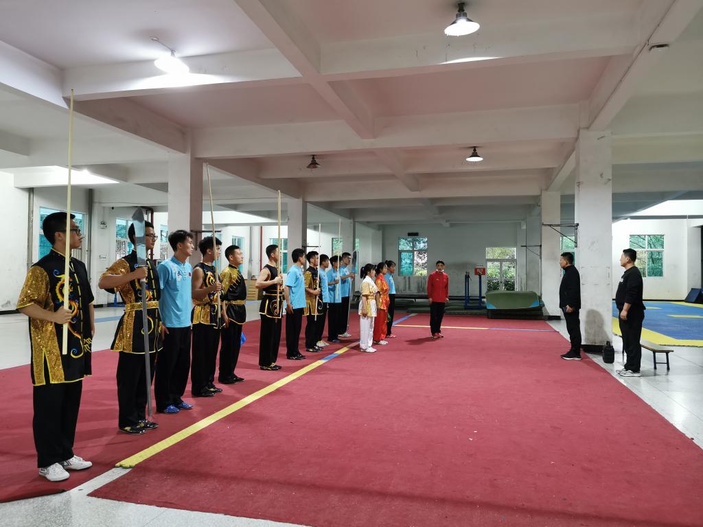 10月6日,best365英国体育在线副经理郭西魁、武术队教练廖建发、学工办副主任王立,特邀教练何爱明,一起组织武术队同学进行了以赛促训、以赛带练的队内模拟赛。为了让队员真正体会到久违的比赛感觉,也为了检验假期突击训练的成果,模拟赛完全按照正式比赛的程序和要求进行,队员们也都进行了套路和器械的充分展示。模拟比赛结束后,各位评委对运动员的表现进行了综合点评,在表现难度、动作的稳定性、视频录制技巧等方面进行了细致的分析,为10月7日的正式比赛打好基础。