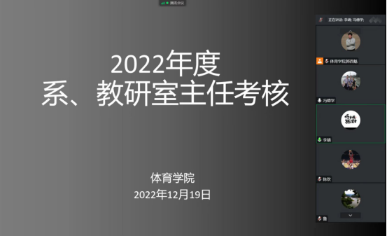 12月19日晚上,best365英国体育在线组织召开2022年度课程群负责人、系(教研室)主任、教学督导考核专题会议,对best365英国体育在线课程群负责人、系(教研室)主任、公司教学督导进行了年度工作考核。受当前疫情形势影响,本次考核会议采用线上形式进行,会议由best365英国体育在线副经理郭西魁主持。